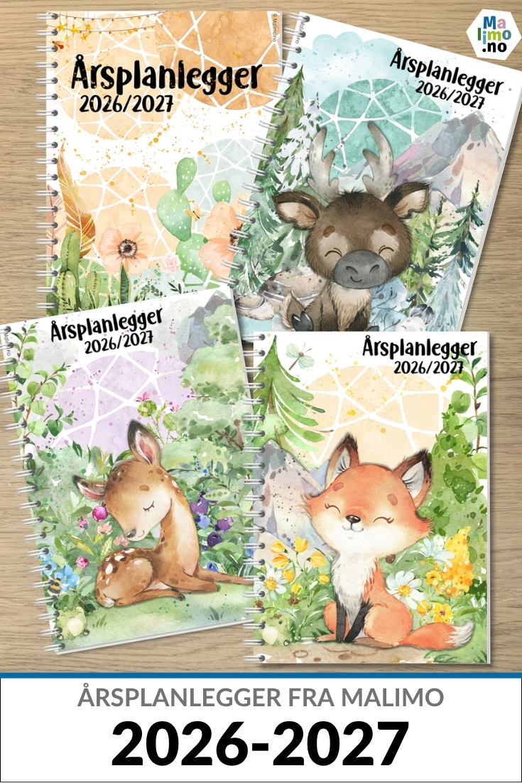 Årsplanleggere for 2026/2027 blir det niende året på rad med kalenderbøker fra Malimo! Det er veldig artig å tenke på, og ikke minst artig å se dem i bruk rundt omkring både i barnehager, skoler og ellers. I dette innlegget vil jeg fortelle deg mer om årets format, målformer og designalternativer!